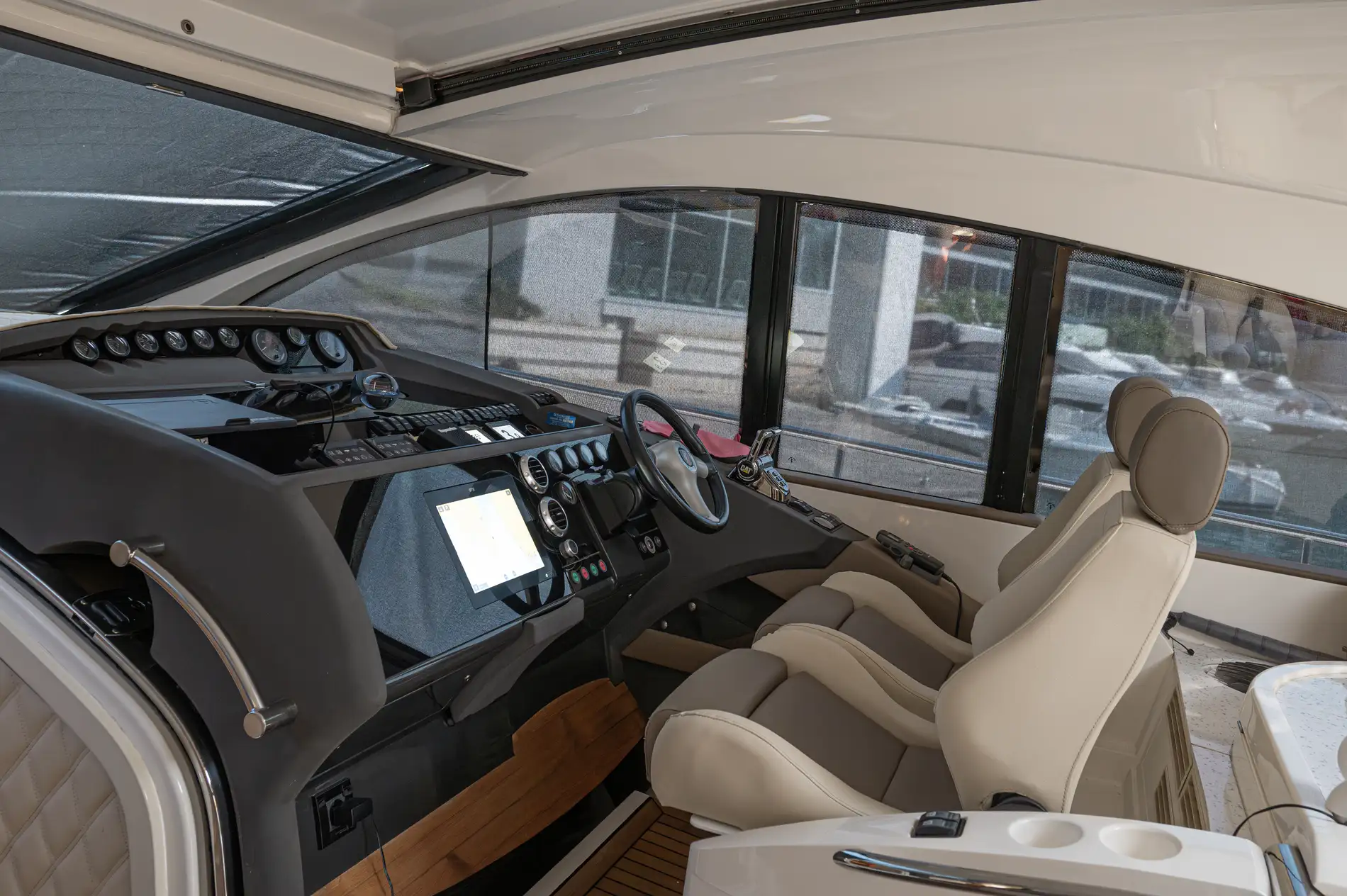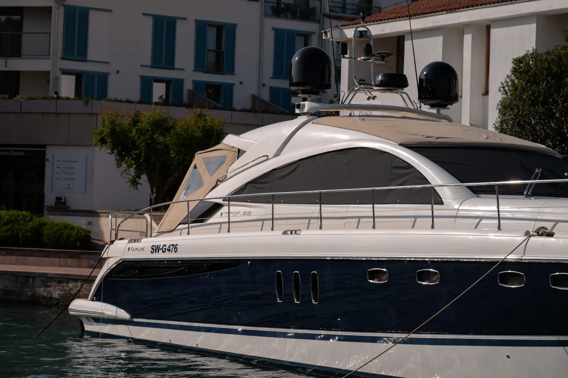 The Fairline 62 is a yacht whose silhouette alone makes it clear that it is in a class of its own. Elegant and confident, but never pretentious. It is designed for those who want everything on the water – space, comfort, style, and performance – without compromise. The interior is spacious and calm, with warm materials and plenty of light. Three luxurious bedrooms, a comfortable saloon, and a kitchen with everything you need for a multi-day stay at sea. Outside, there is just as much space for socializing, sunbathing, or a quiet dinner at sunset.